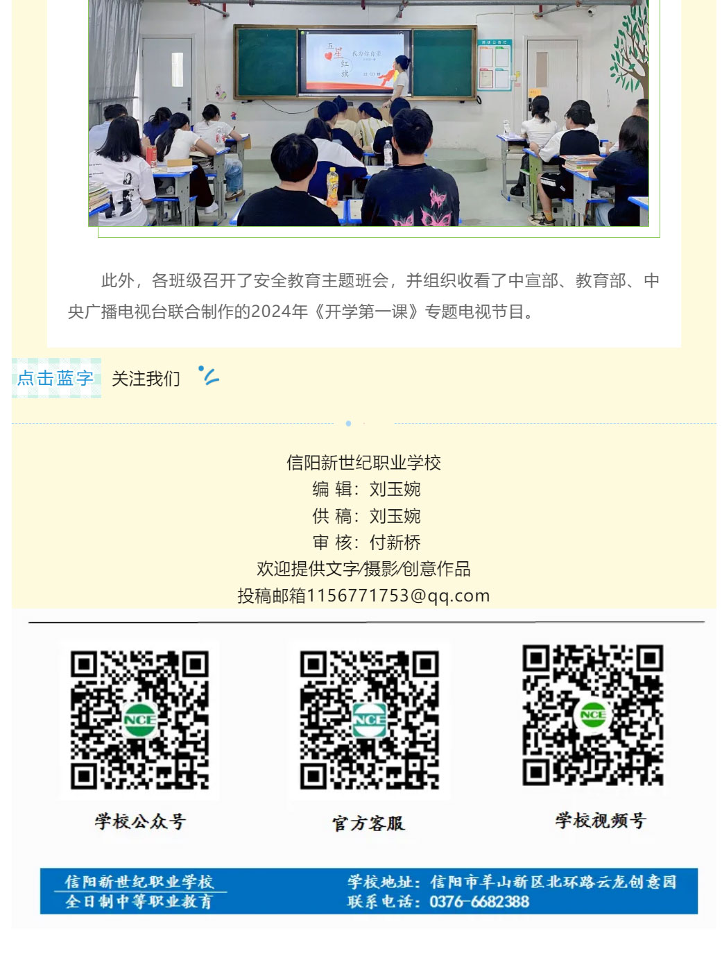 心懷祖國,為夢啟航 —— 信陽新世紀職業學校2024年秋季開學第一課